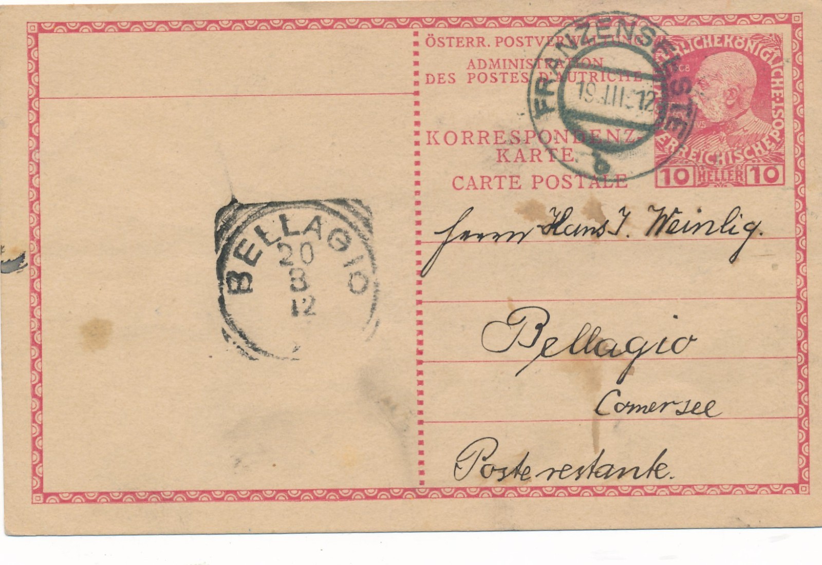 10 Heller Ganzsachen - Karte aus Franzensfeste (16278)