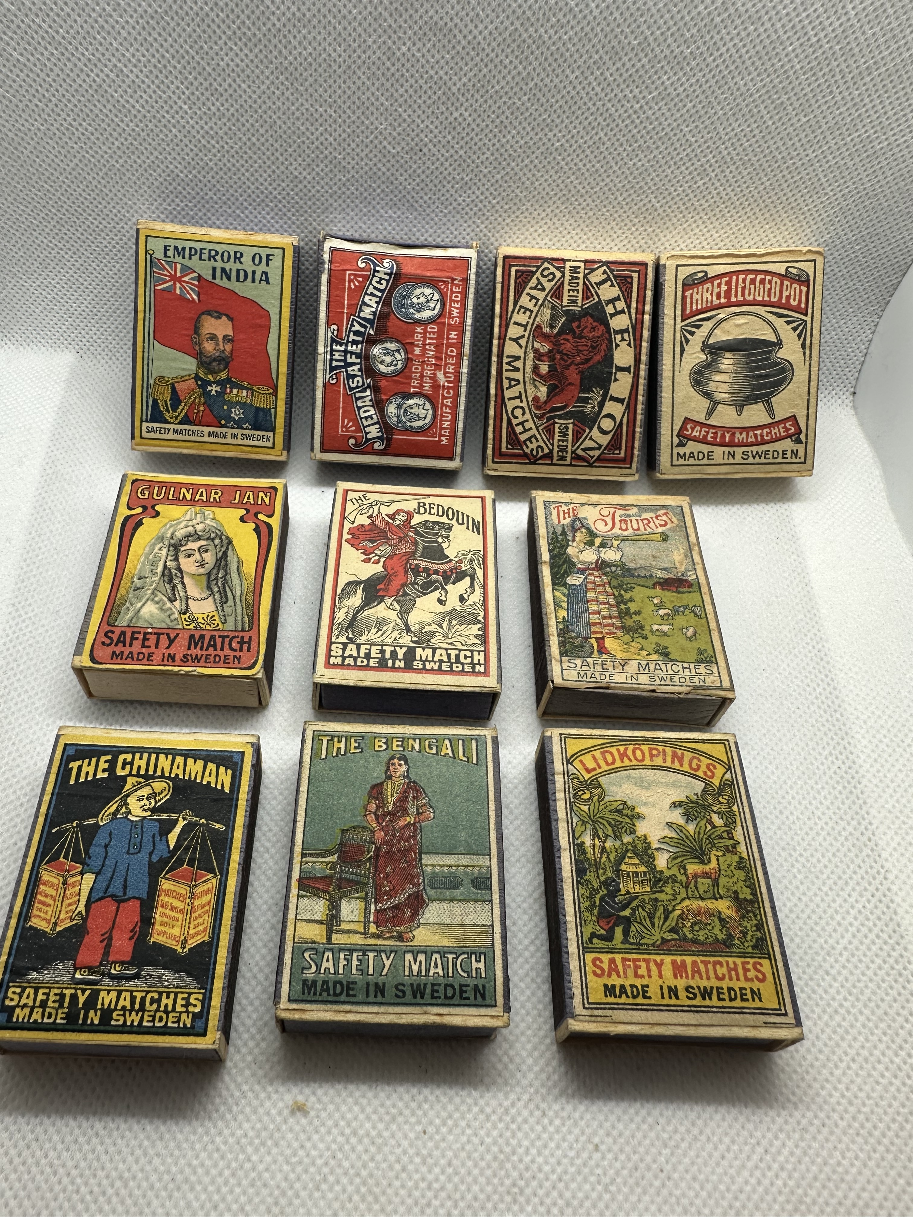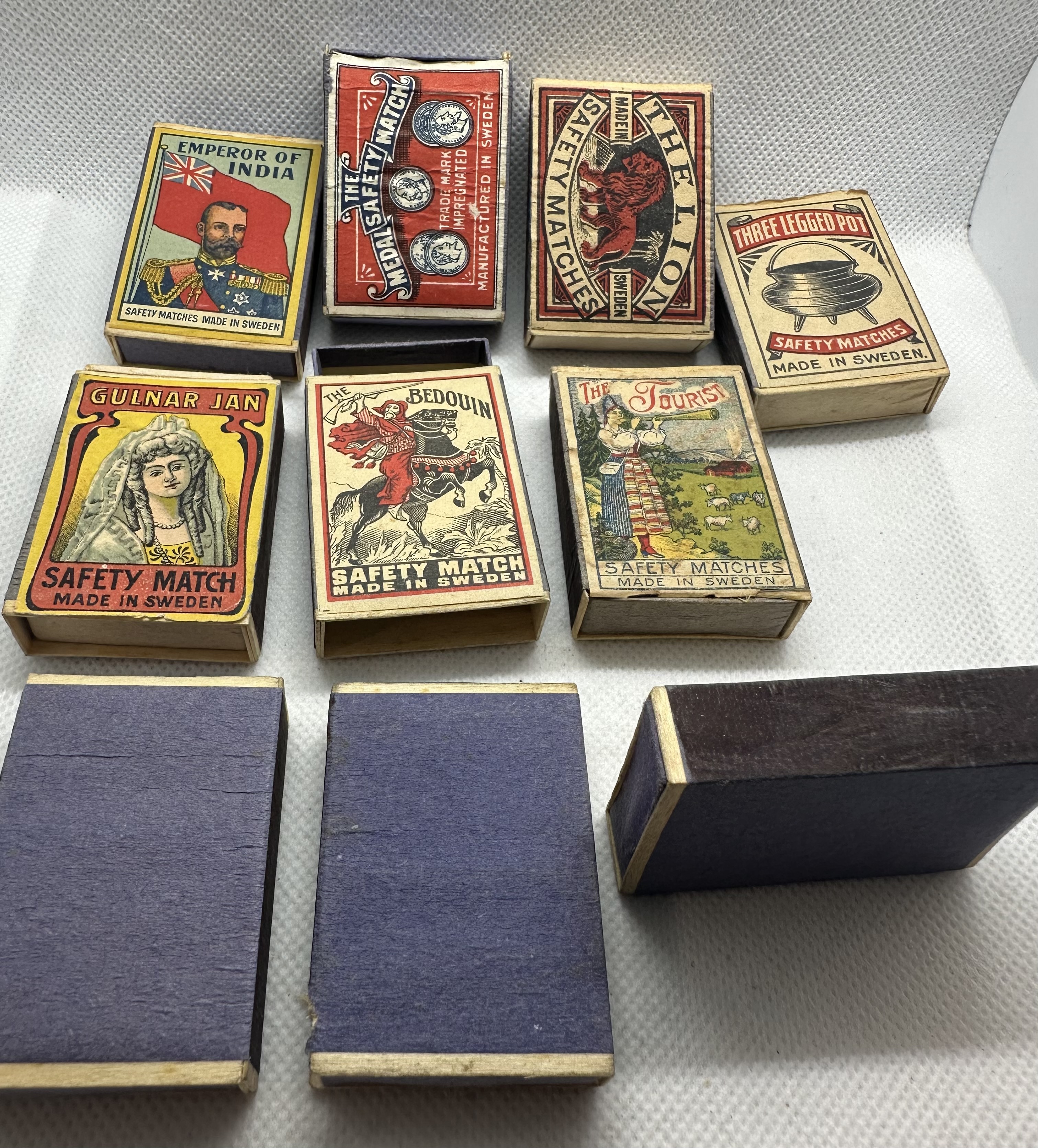 10 Stk. antike Streichholzschachteln Made in Sweden