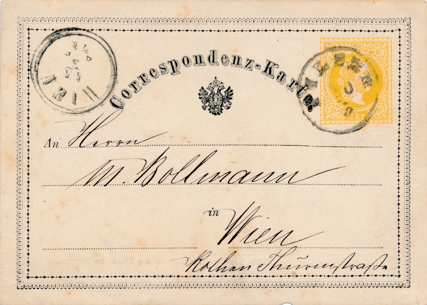 2 Kreuzer - Ganzsachen - Karte 1871 aus Pilsen (12301)
