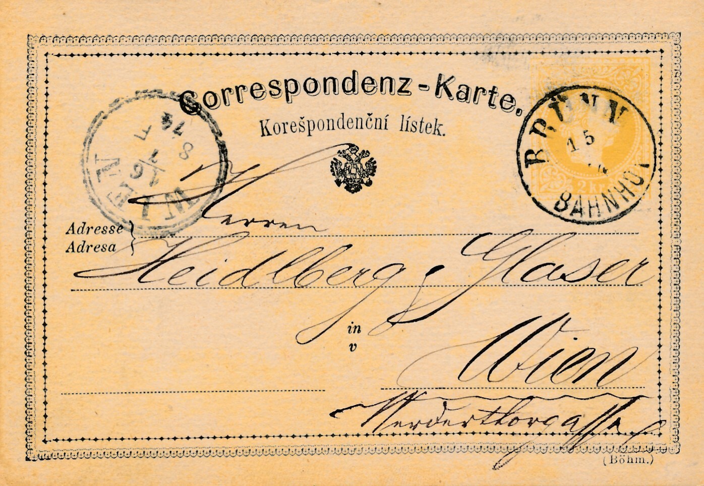 2 Kreuzer - Ganzsachen - Karte 1874 aus Brünn Bahnhof (13352)