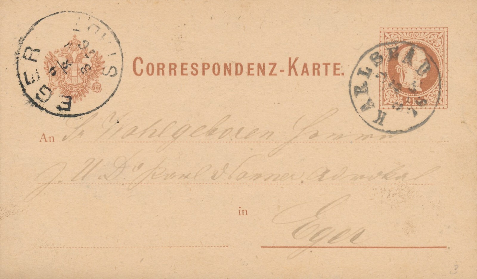 2 Kreuzer - Ganzsachen - Karte 1876 aus Karlsbad (10175)