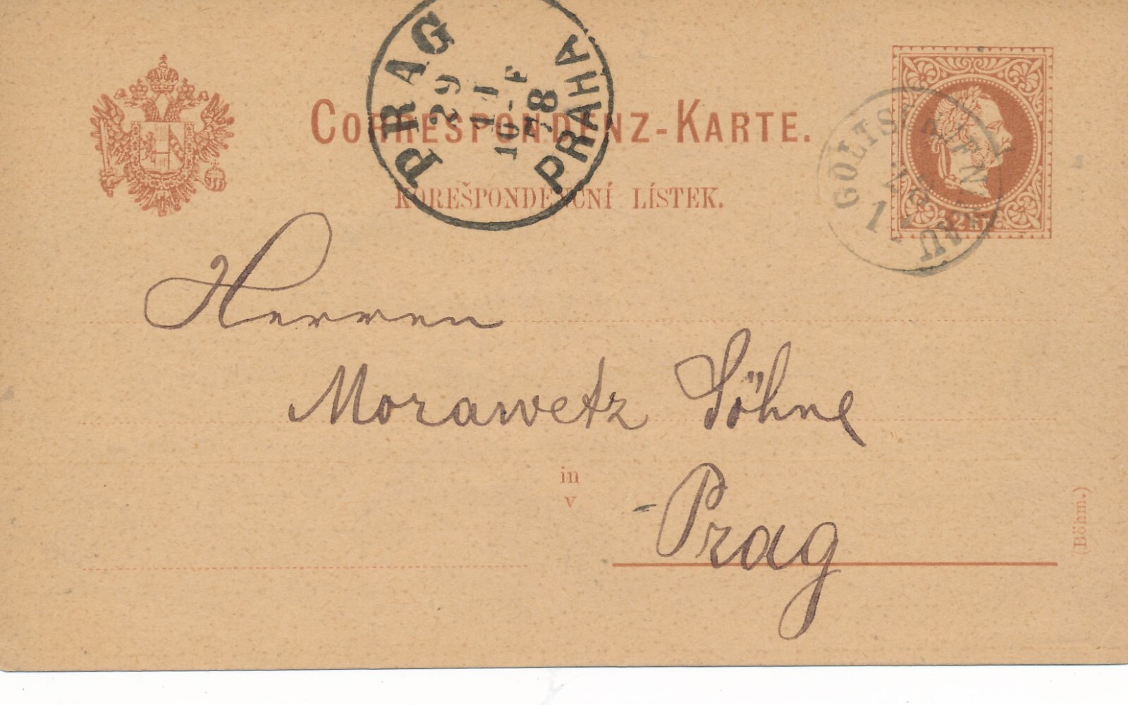 2 Kreuzer Ganzsachen - Karte 1878 aus Goltschenikau (14366)