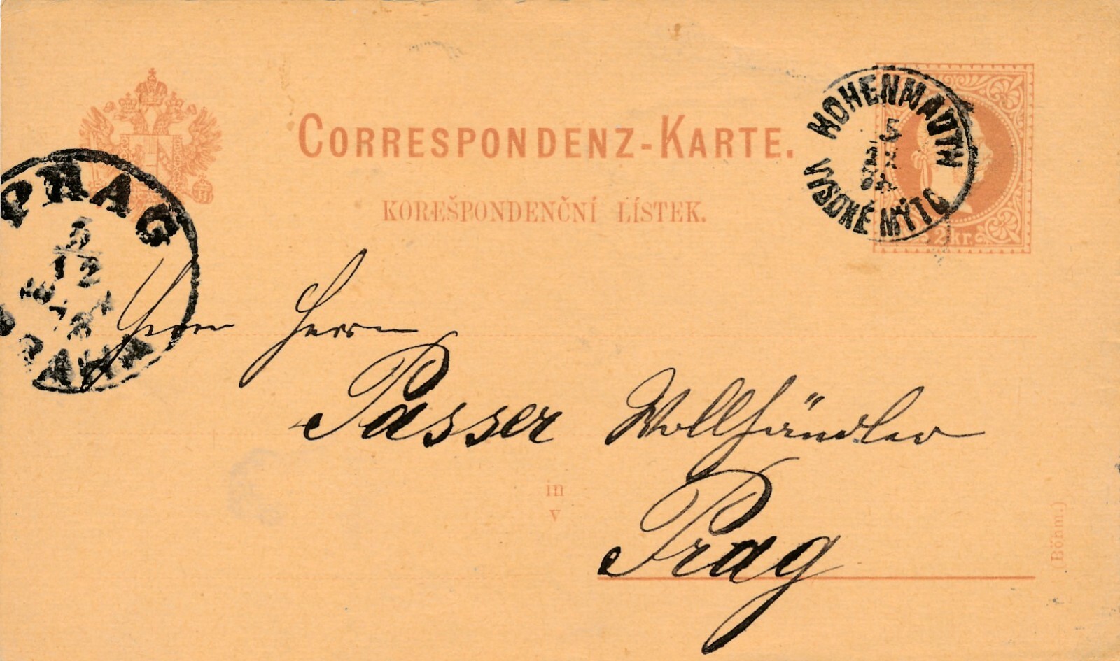 2 Kreuzer - Ganzsachen - Karte 1878 aus Hohenmauth (10158)
