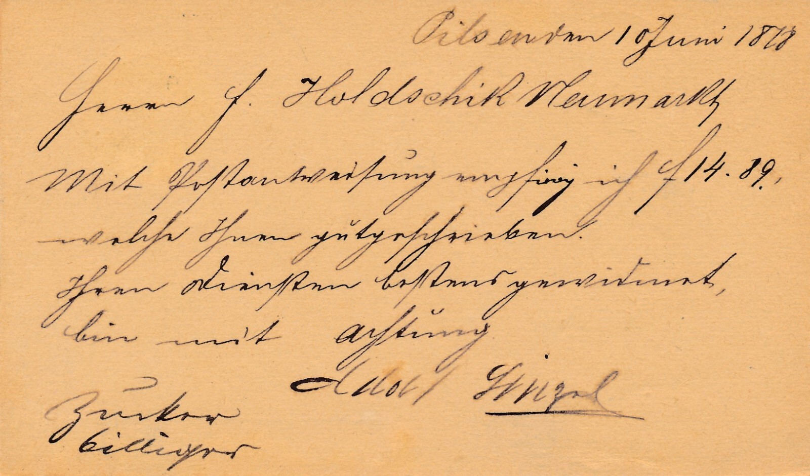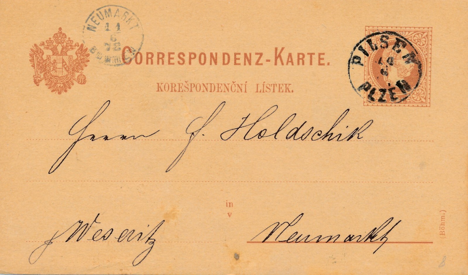 2 Kreuzer - Ganzsachen - Karte 1878 aus Pilsen - Pilzen (13547)