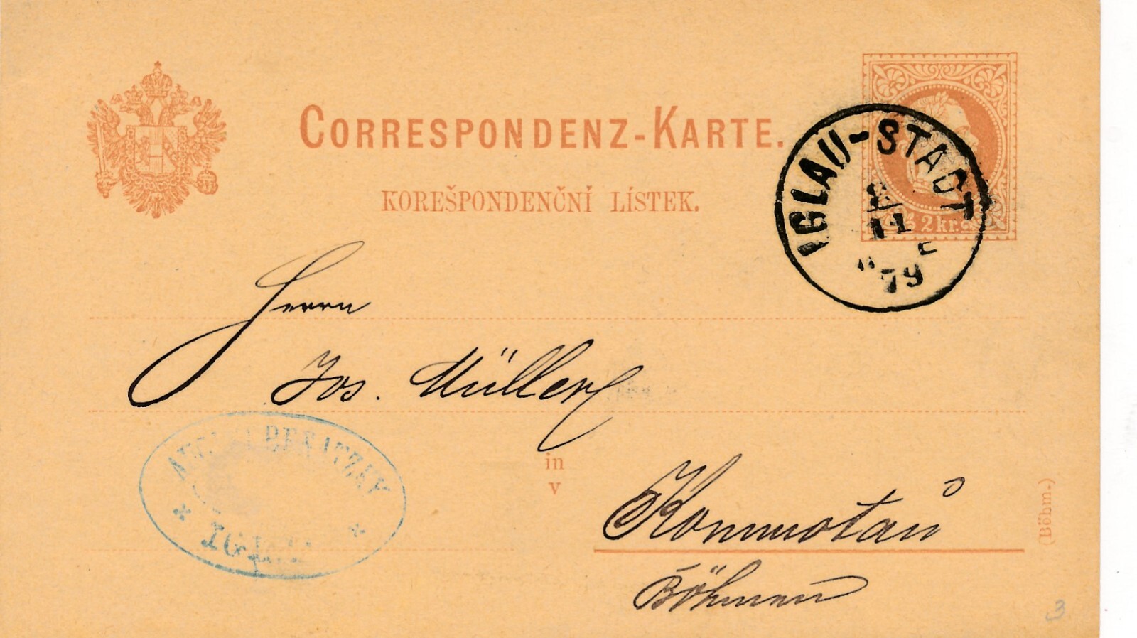 2 Kreuzer - Ganzsachen - Karte 1879 aus Iglau Stadt (10064)