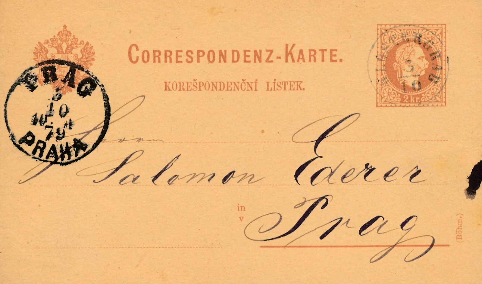 2 Kreuzer - Ganzsachen - Karte 1879 aus Klostergrab (10862)