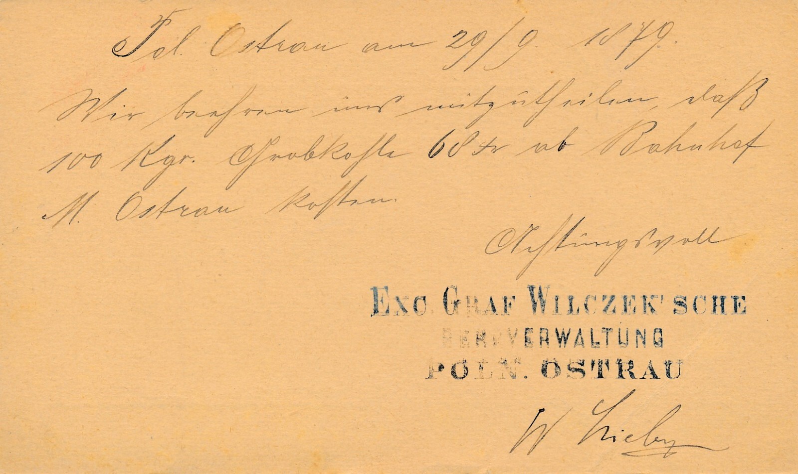 2 Kreuzer - Ganzsachen - Karte 1879 aus Krakau - Krakow Bahnhof (13549)