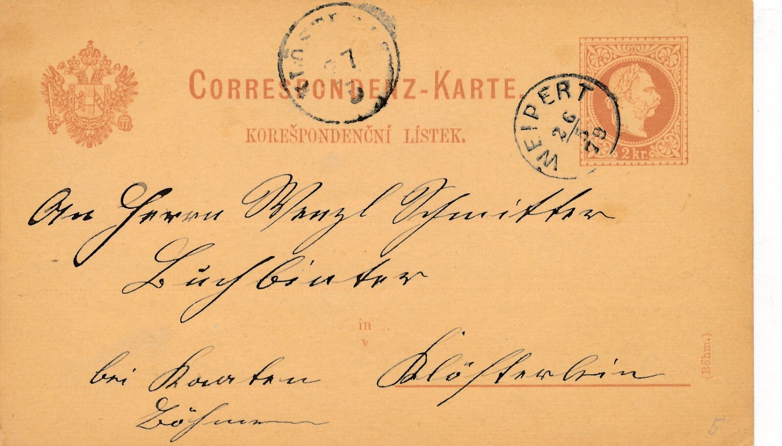 2 Kreuzer - Ganzsachen - Karte 1879 aus Weipert (10087)