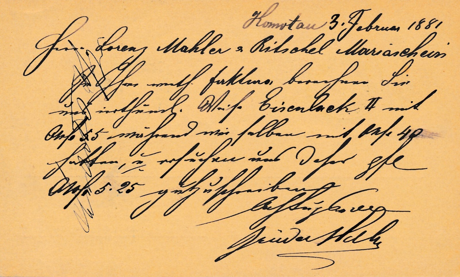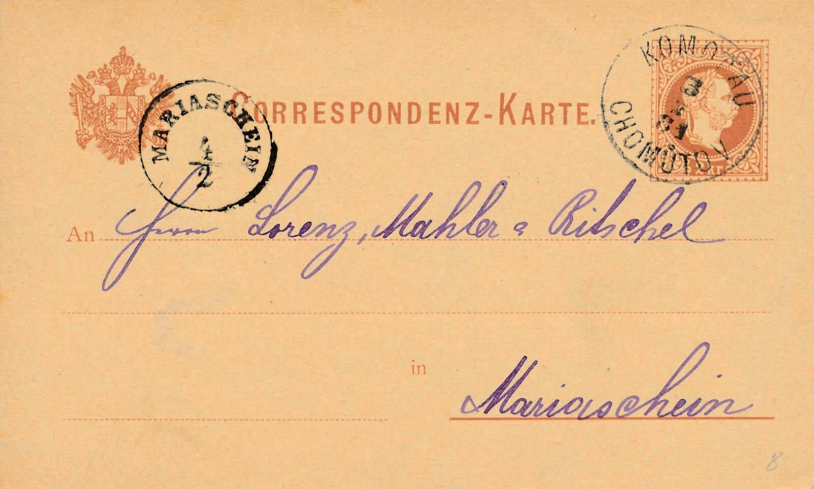 2 Kreuzer - Ganzsachen - Karte 1881 aus Komotau (10172)