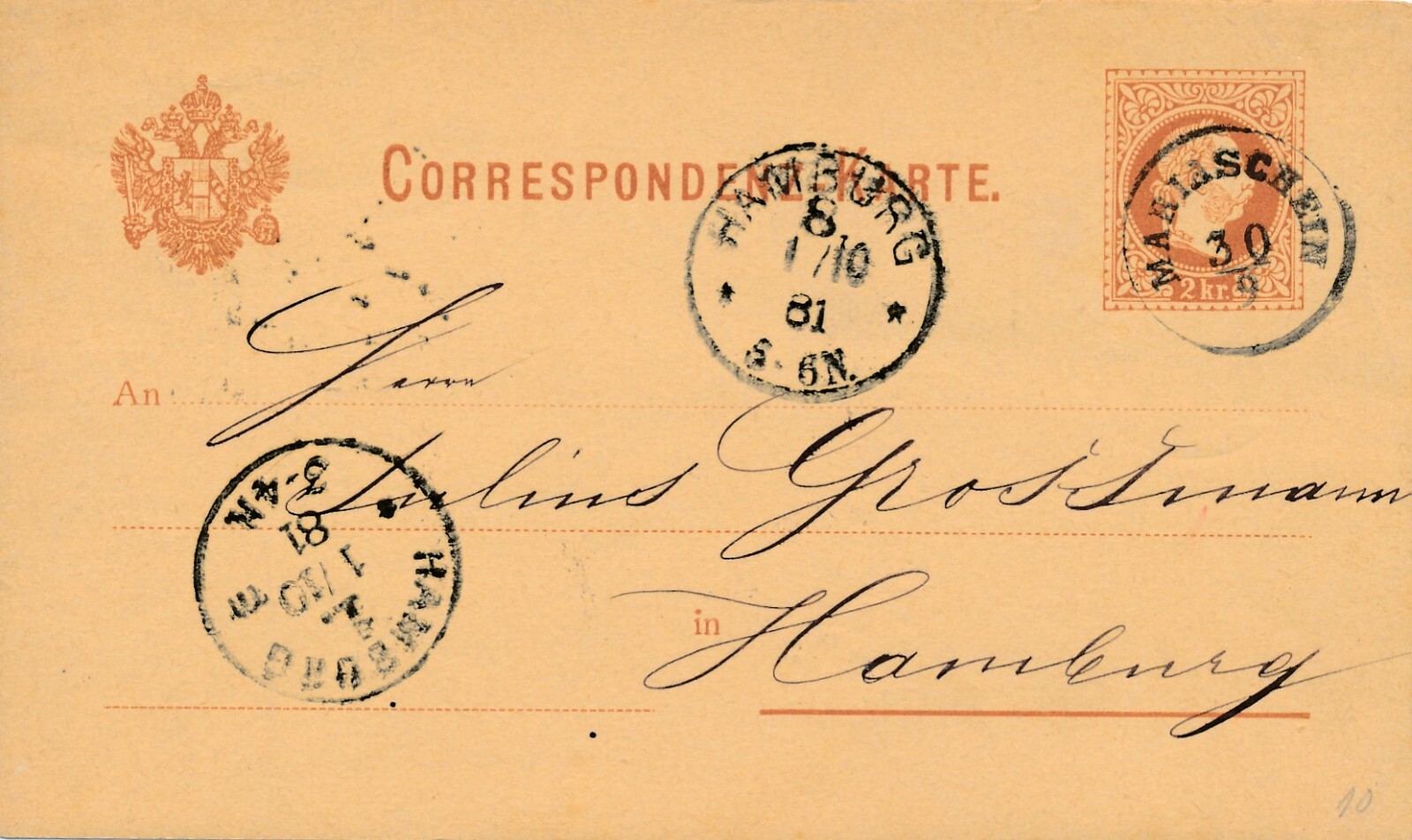 2 Kreuzer - Ganzsachen - Karte 1881 aus Mariaschein (13576)