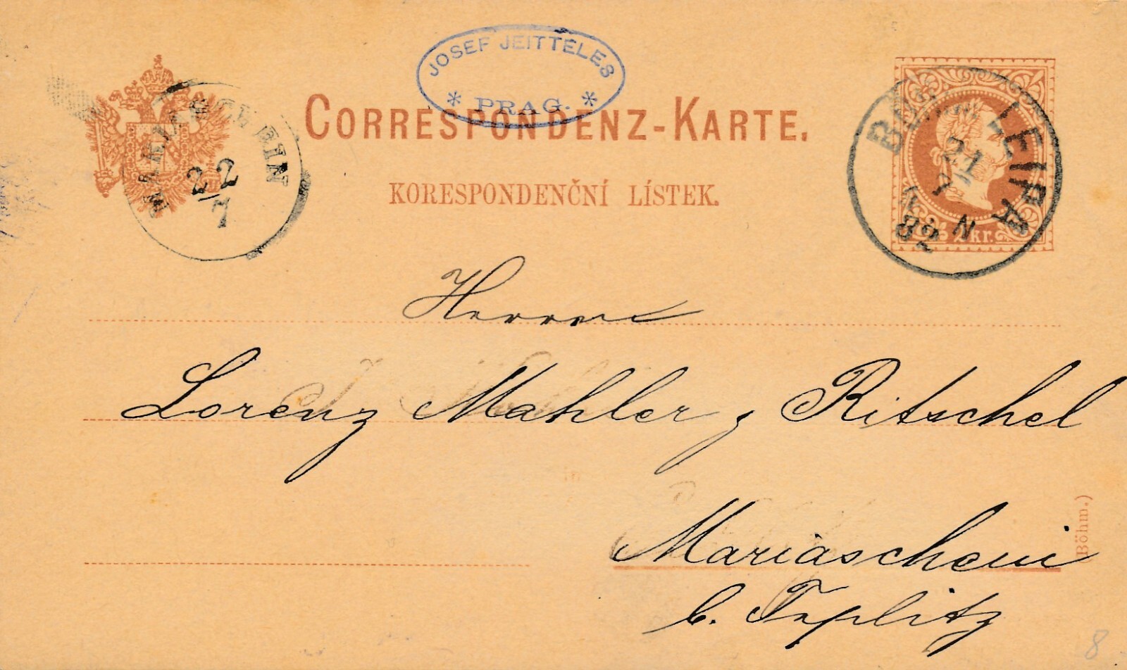 2 Kreuzer - Ganzsachen - Karte 1882 aus Böhm. Leipa (13597)