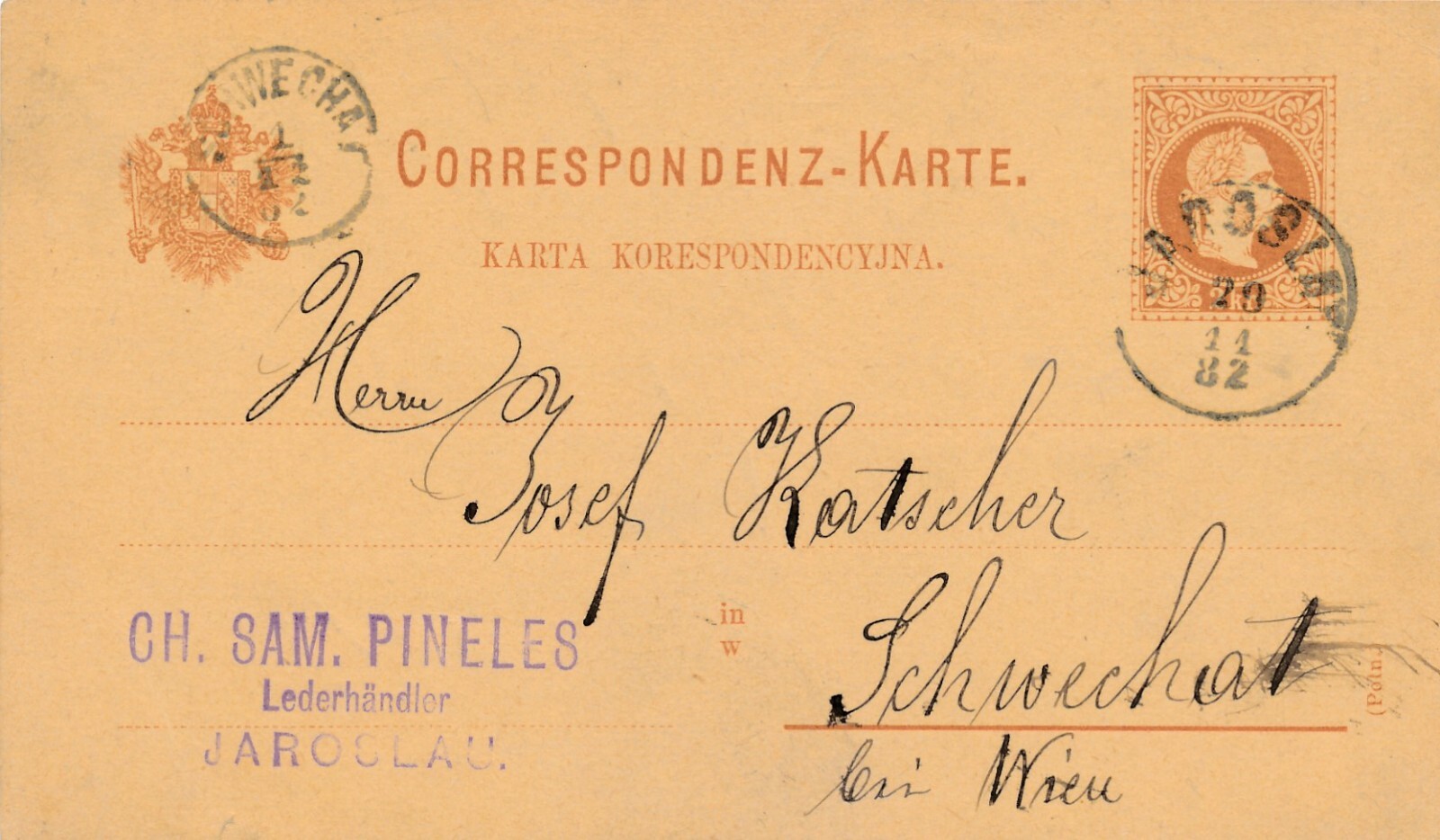 2 Kreuzer - Ganzsachen - Karte 1882 aus Laroslav (13587)