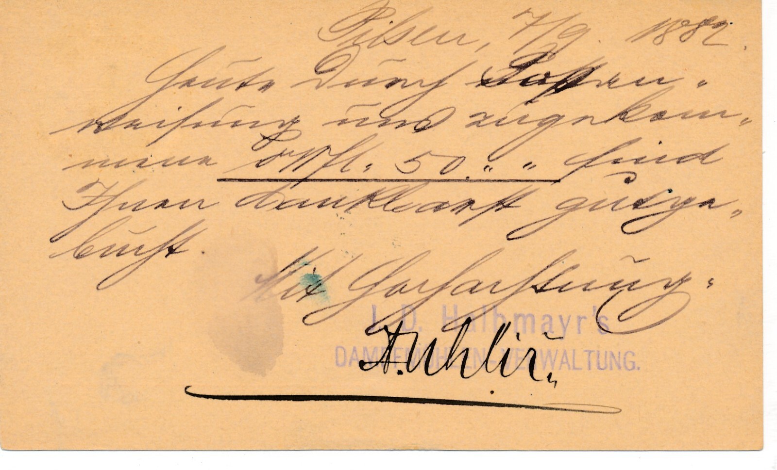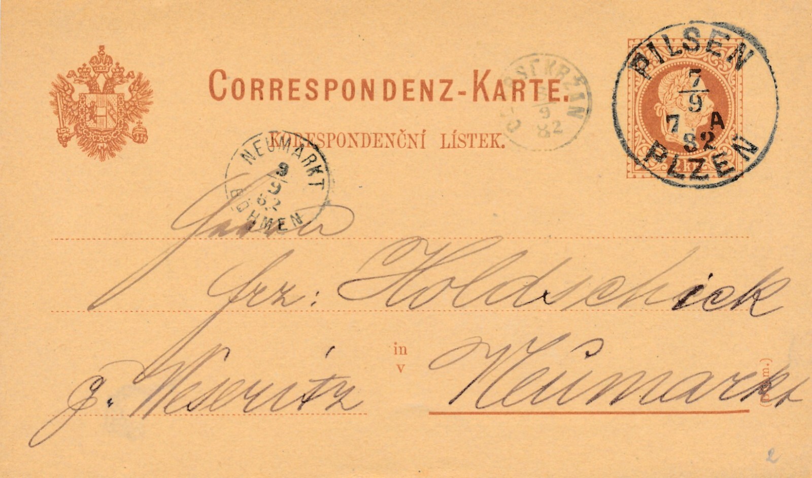 2 Kreuzer - Ganzsachen - Karte 1882 aus Pilsen (10080)