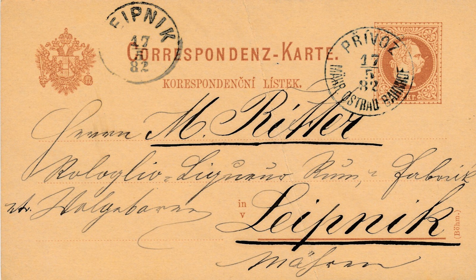 2 Kreuzer - Ganzsachen - Karte 1882 aus Privoz (10855)