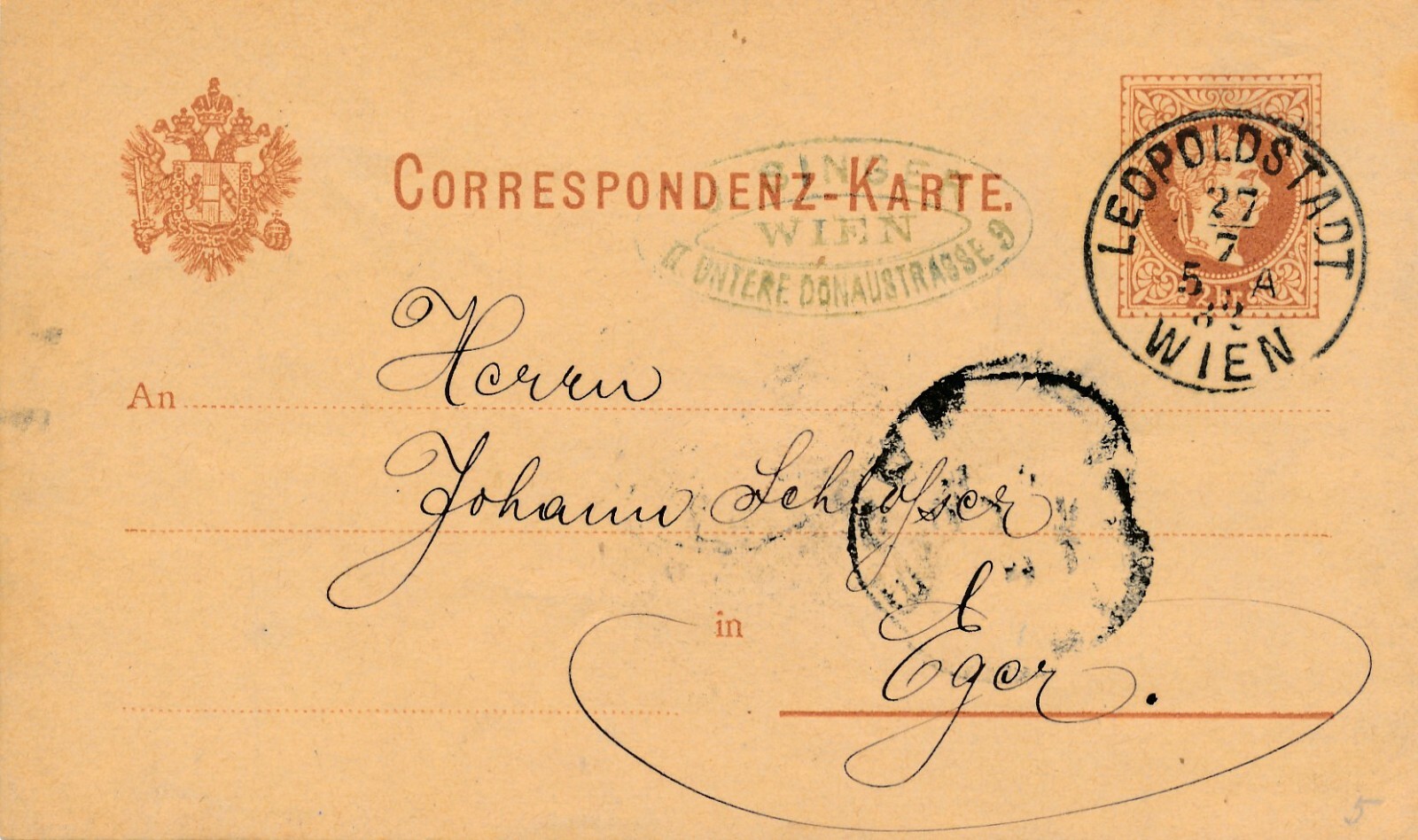 2 Kreuzer - Ganzsachen - Karte 1882 aus Wien Leopoldstadt (13562)