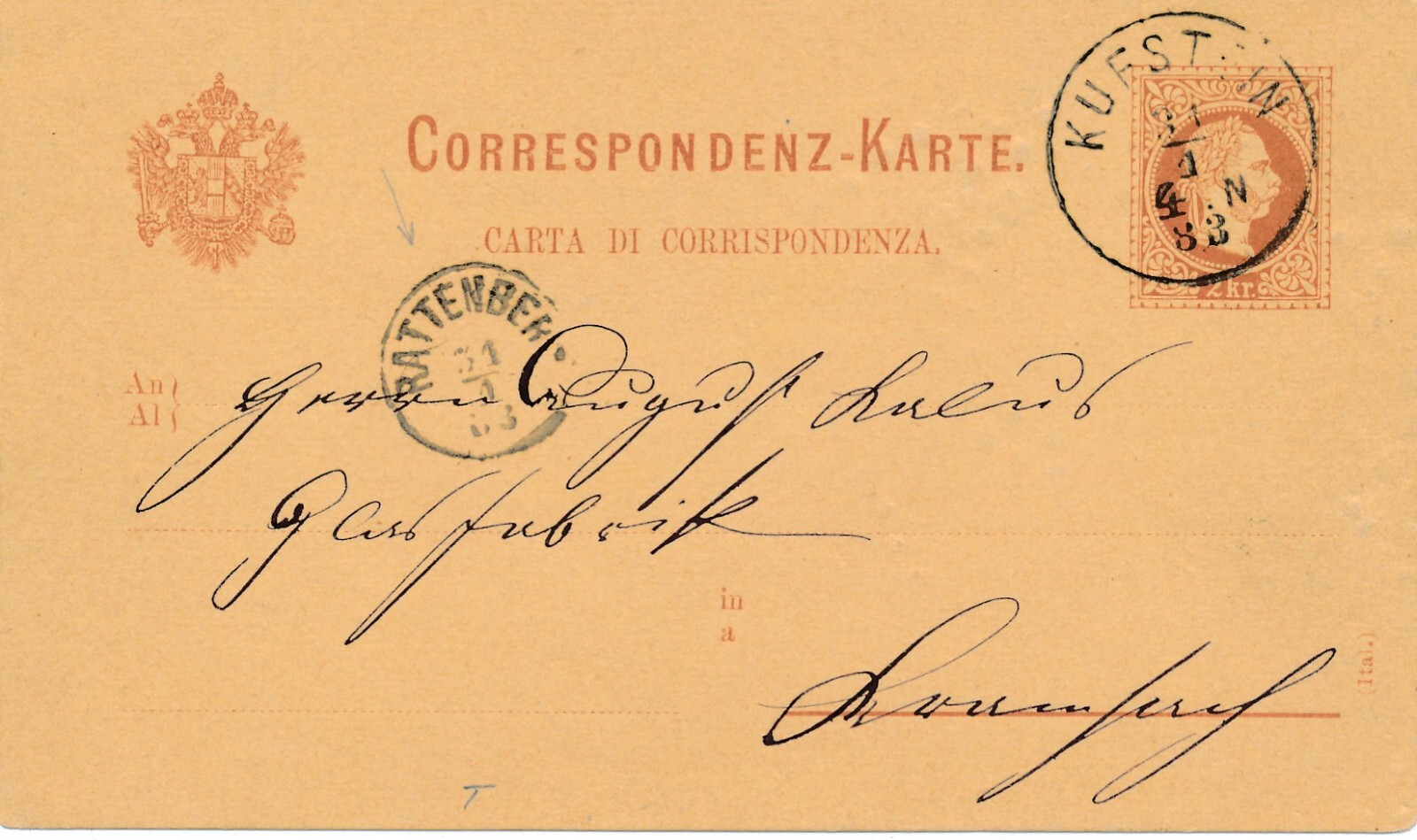 2 Kreuzer Ganzsachen - Karte 1883 aus Kufstein (12532)