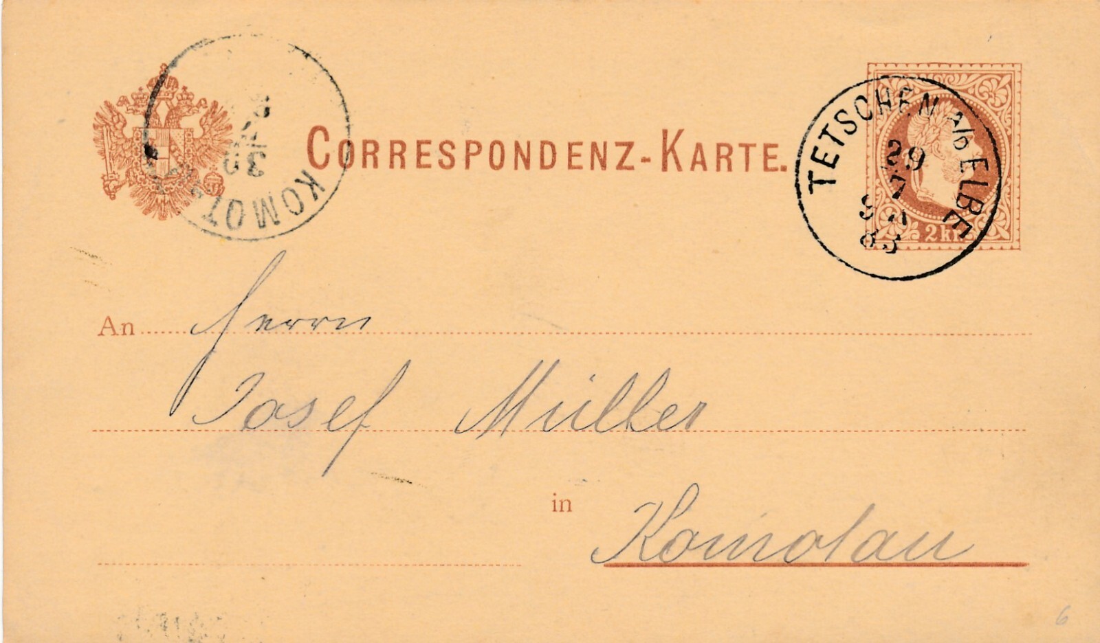 2 Kreuzer - Ganzsachen - Karte 1883 aus Tetschen (10119)