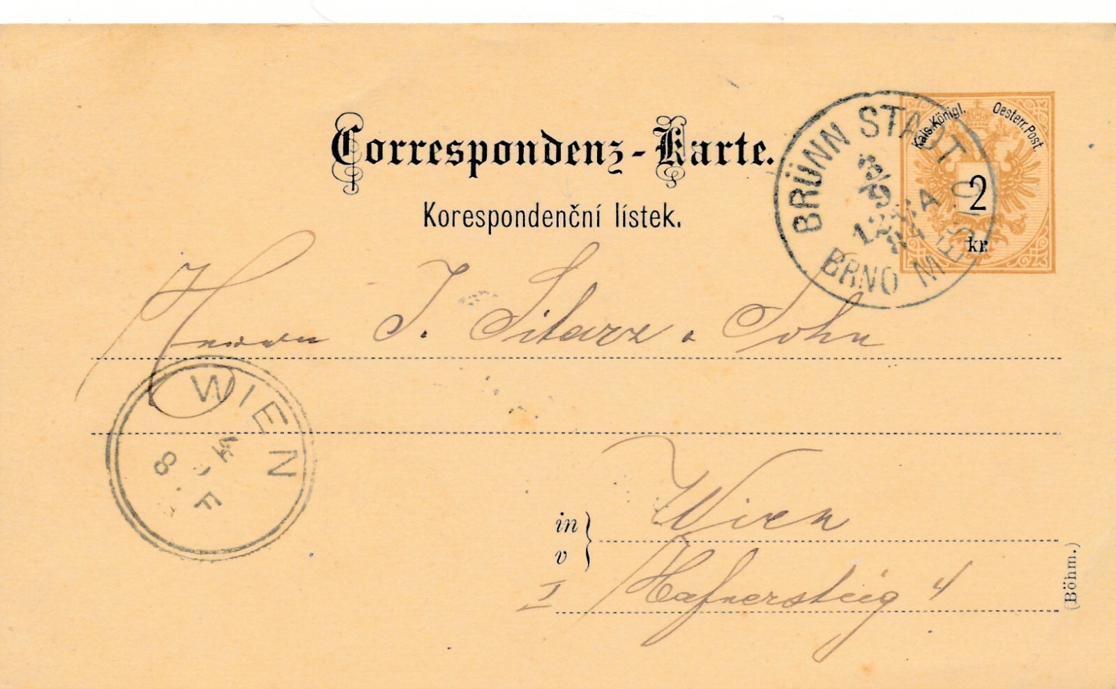 2 Kreuzer Ganzsachen - Karte 1884 aus Brünn Stadt (11187)