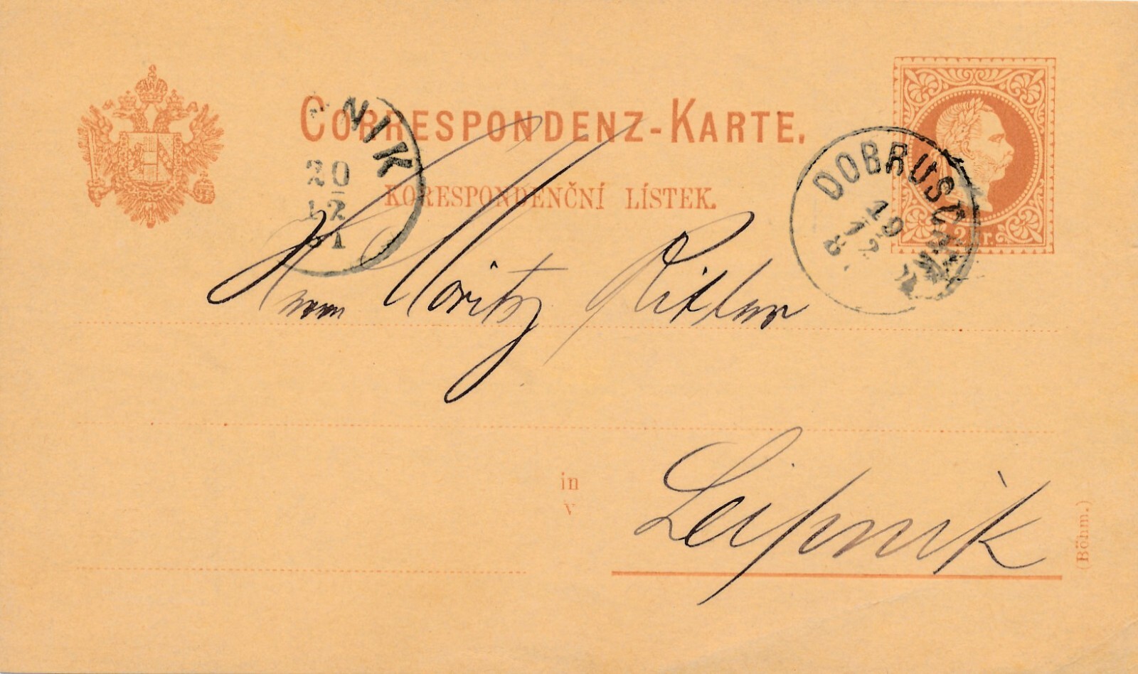 2 Kreuzer - Ganzsachen - Karte 1884 aus Dobruschka (13596)