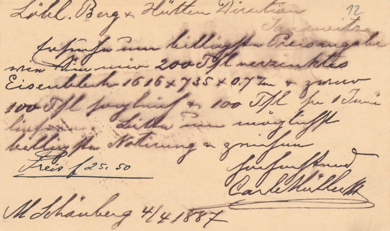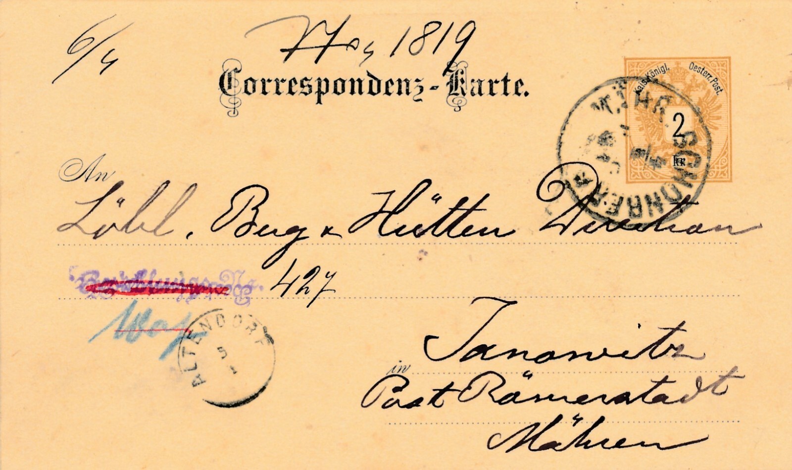 2 Kreuzer Ganzsachen - Karte 1887 aus Schönberg (9987)