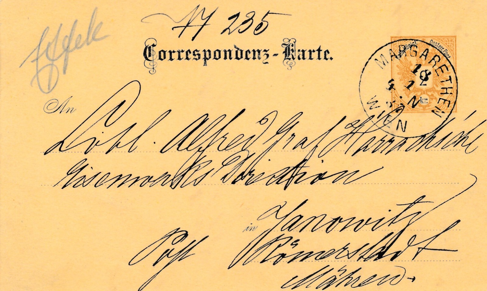 2 Kreuzer - Ganzsachen - Karte 1887 aus Wien Margarethen (10679)