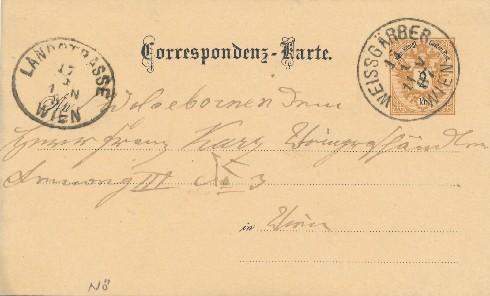 2 Kreuzer Ganzsachen - Karte 1887 aus Wien Weissgärber (12538)