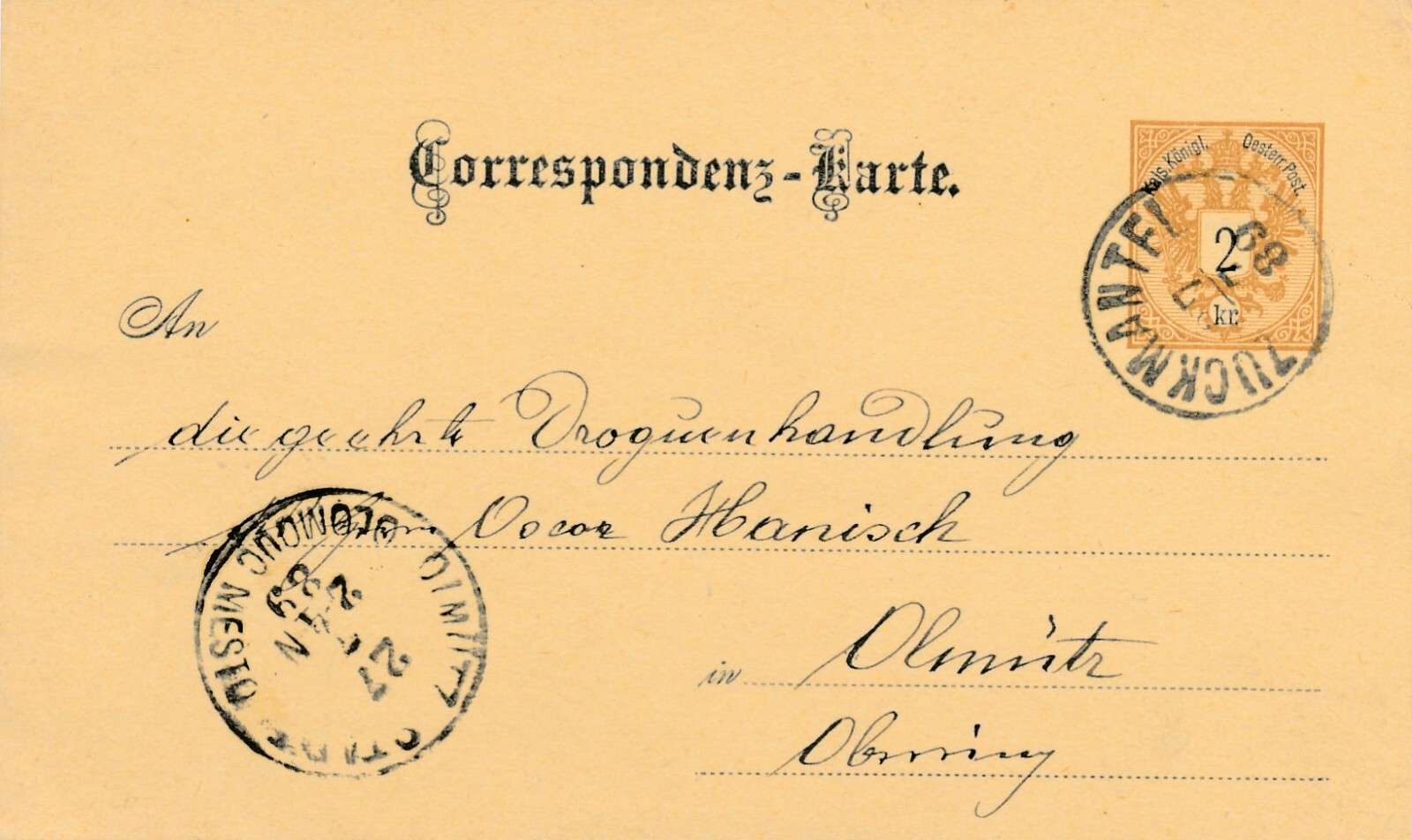 2 Kreuzer Ganzsachen - Karte 1889 aus Zuckmantel (11186)