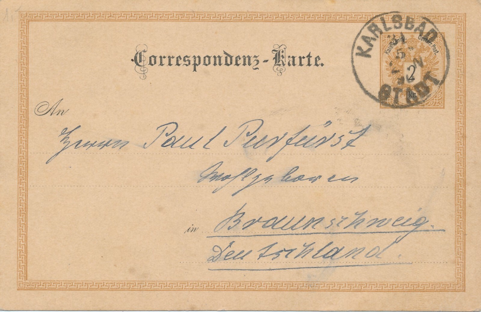 2 Kreuzer Ganzsachen - Karte aus Karolinenthal (14915)