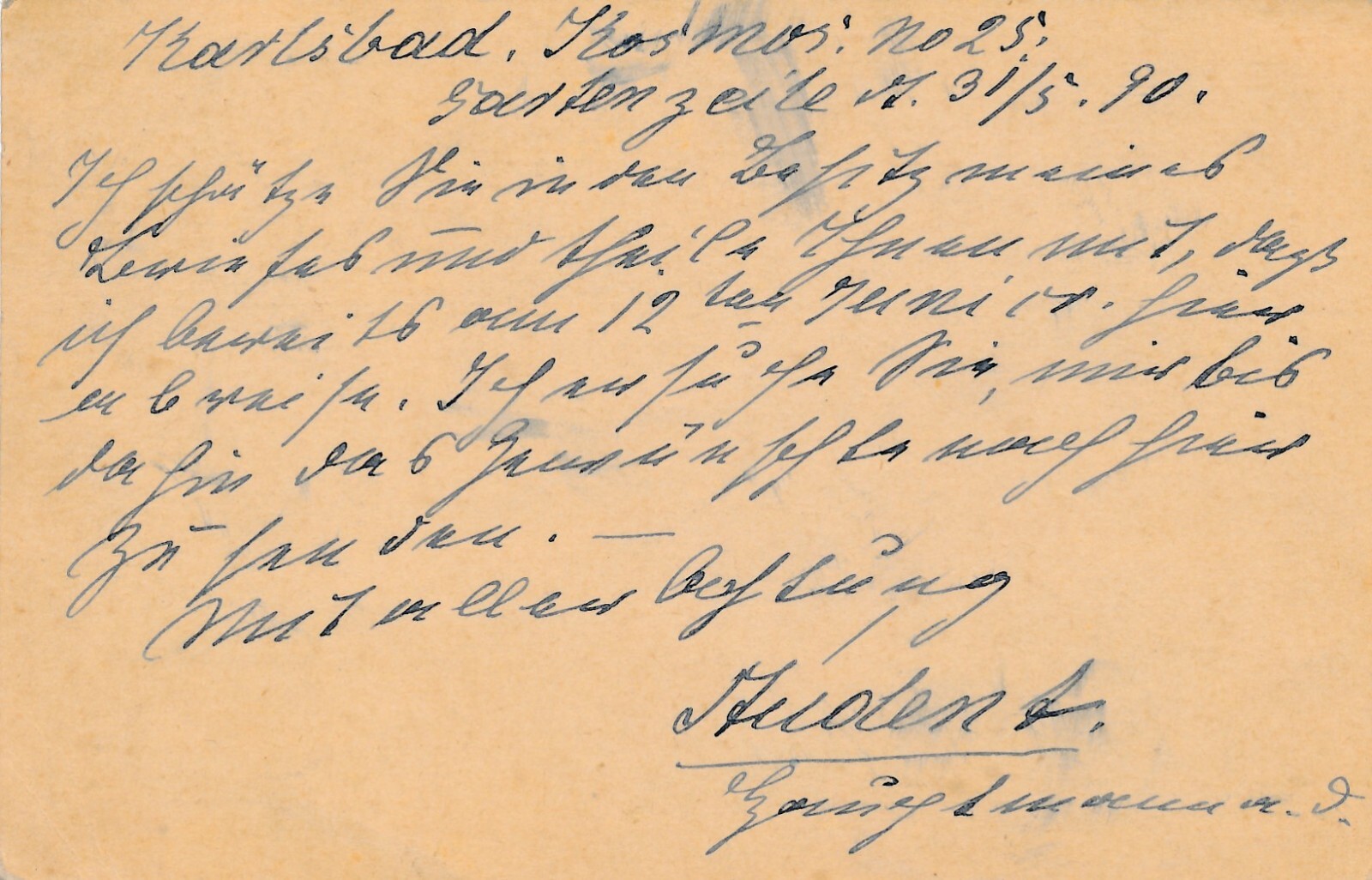 2 Kreuzer - Ganzsachen - Karte 1890 aus Karlsbad Stadt (12294)