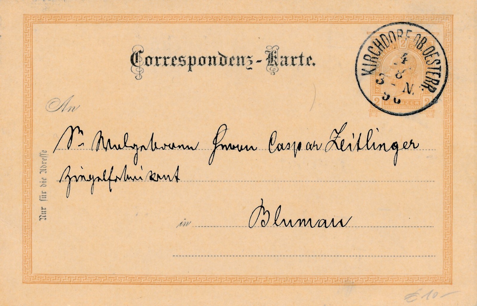 2 Kreuzer Ganzsachen - Karte 1890 aus Kirchdorf (11389)