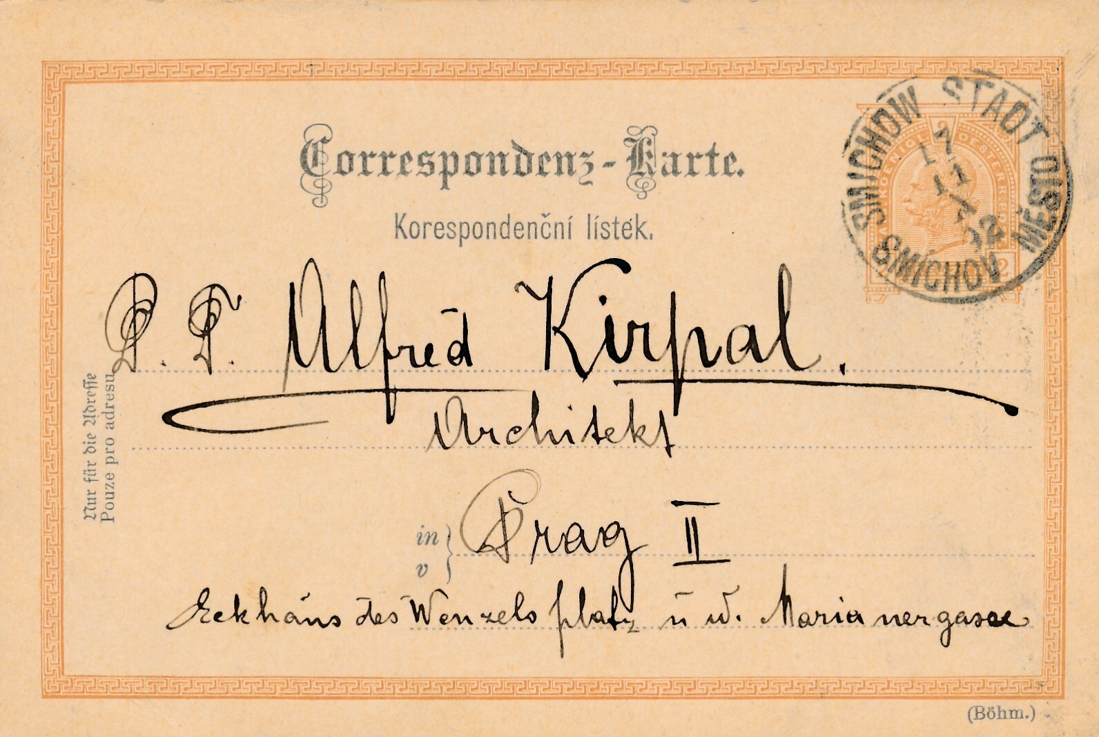2 Kreuzer Ganzsachen - Karte 1892 aus Smichow Stadt (10443)