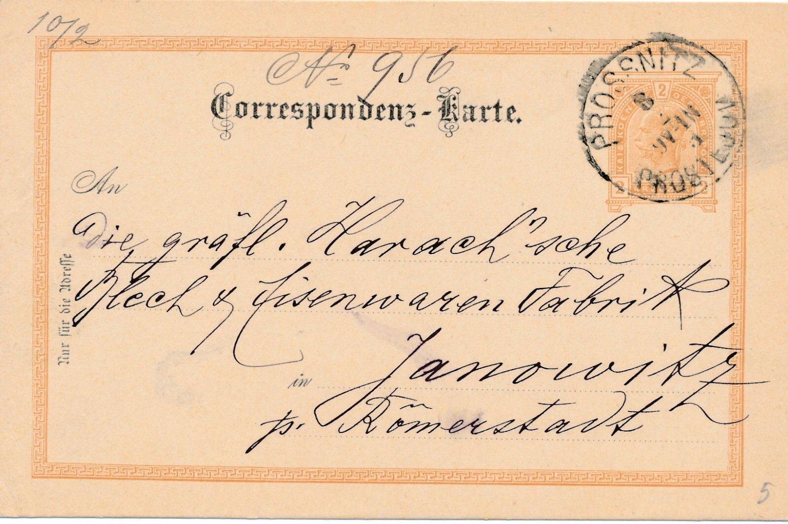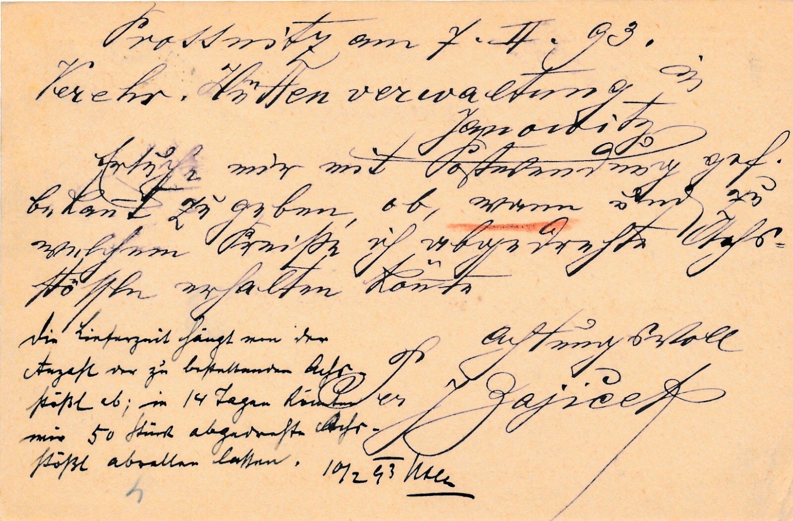 2 Kreuzer Ganzsachen - Karte 1893 aus Prossnitz (8396)
