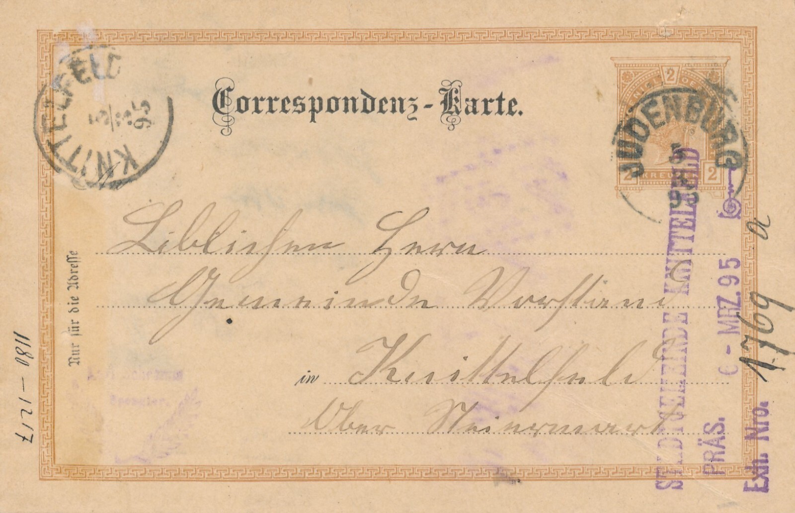 2 Kreuzer Ganzsachen - Karte 1895 aus Judenburg (8398)