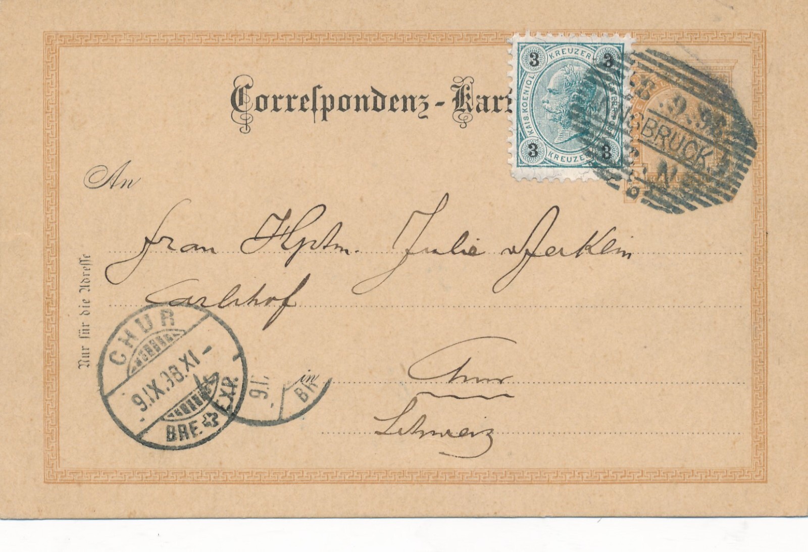 2 Kreuzer - Ganzsachen - Karte 1896 aus Innsbruck + 3 Kreuzer ZF (12307)