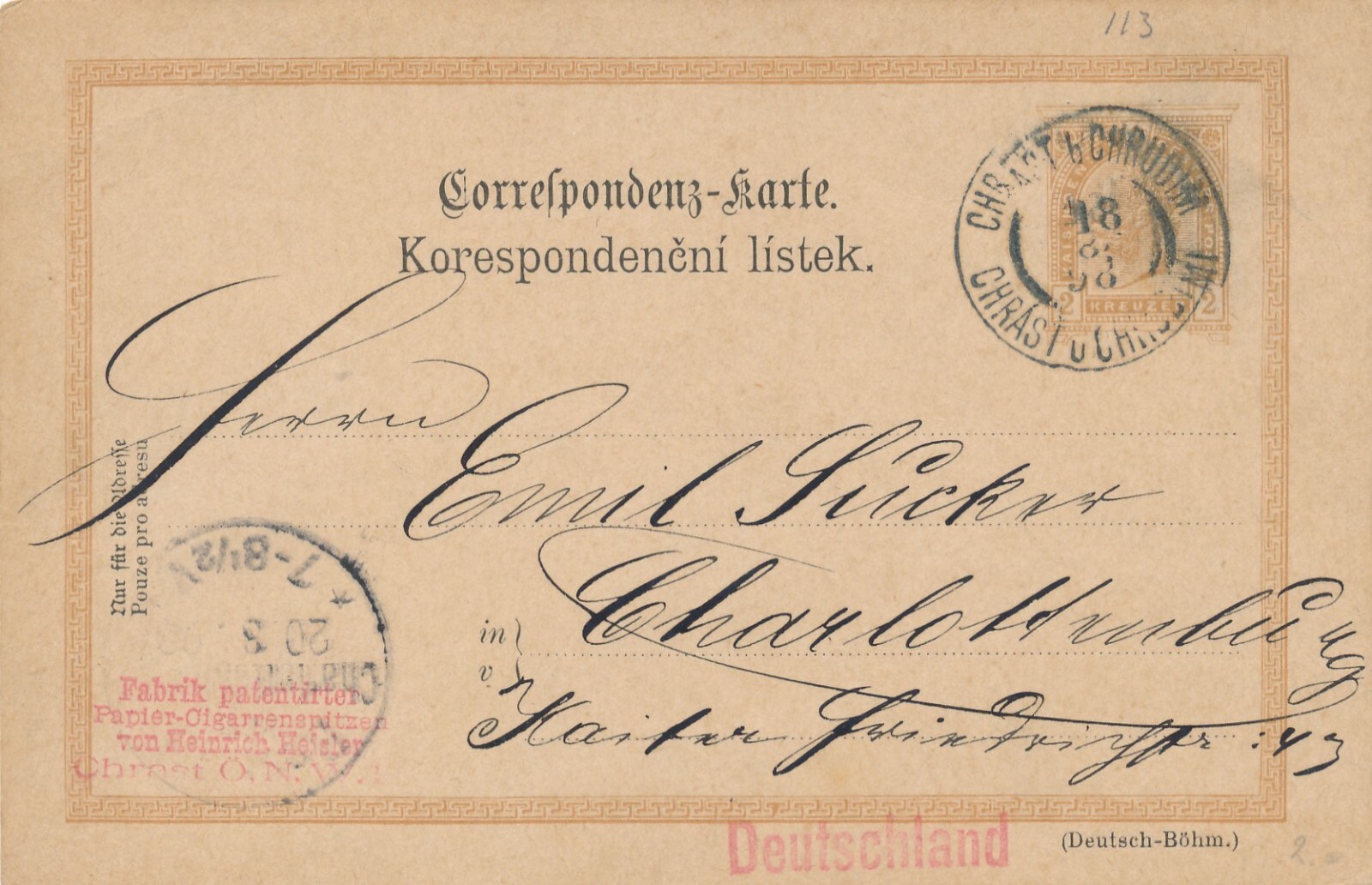 2 Kreuzer - Ganzsachen - Karte 1898 aus Chrudim (12284)
