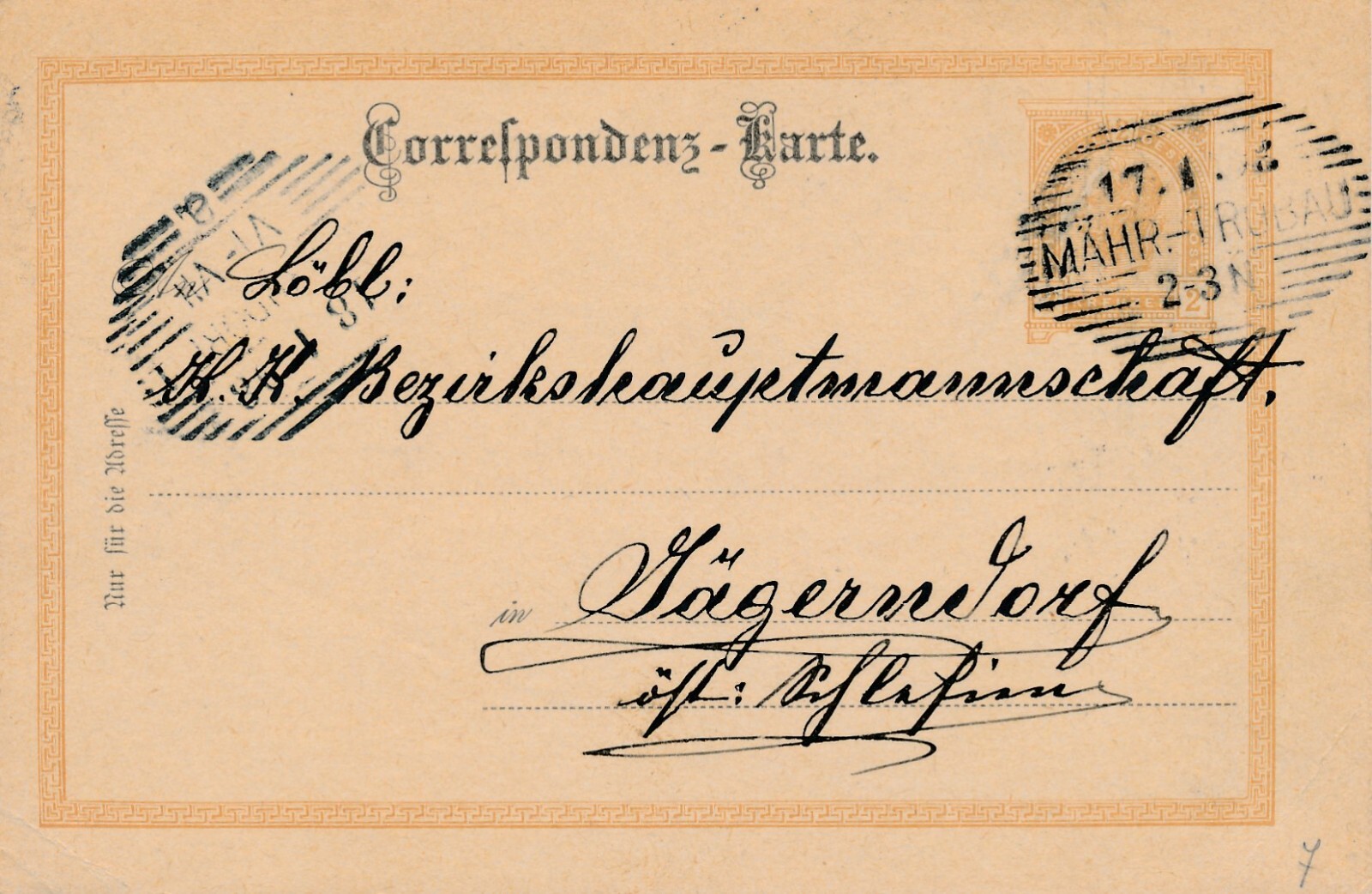 2 Kreuzer - Ganzsachen - Karte 1898 aus Mähr Trobau (10688)
