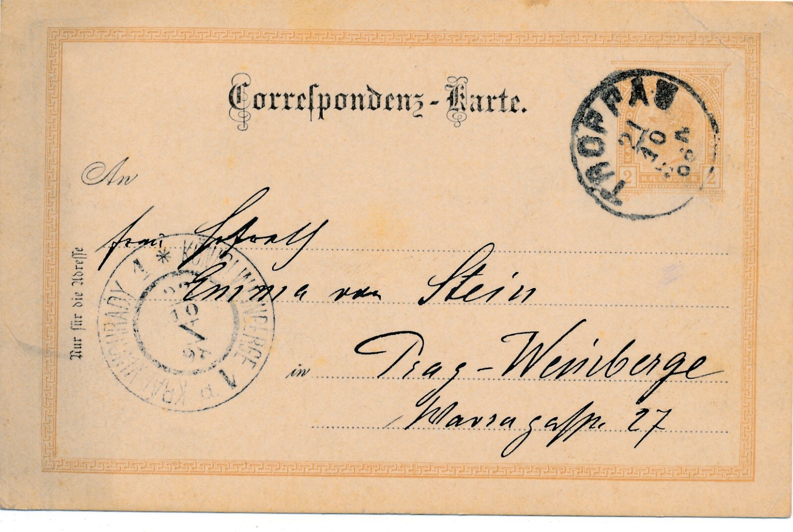 2 Kreuzer Ganzsachen - Karte 1898 aus Troppau (11596)