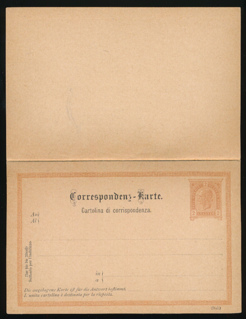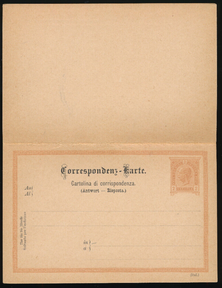 2 Kreuzer Ganzsachen - Karte + Antwortkarte ( Ital ) ungebraucht (3526)