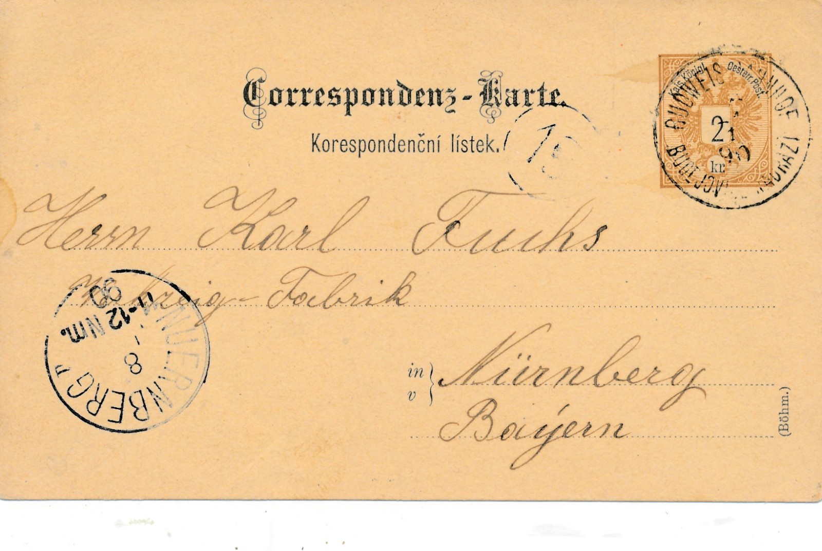 2 Kreuzer Ganzsachen - Karte aus Budweis (14916)