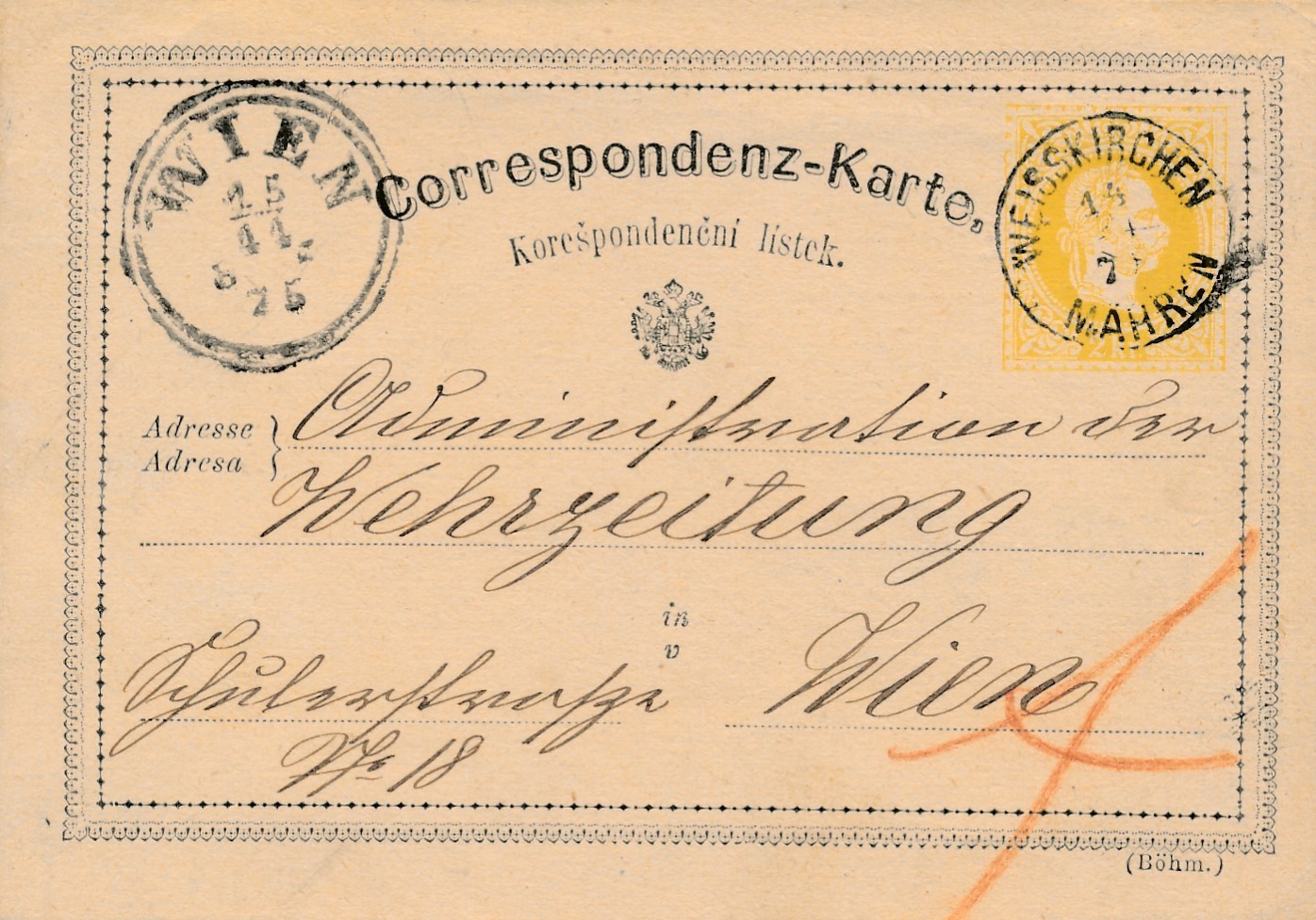 2 Kreuzer Ganzsachen - Karte aus Mähr. Weisskirchen (14913)