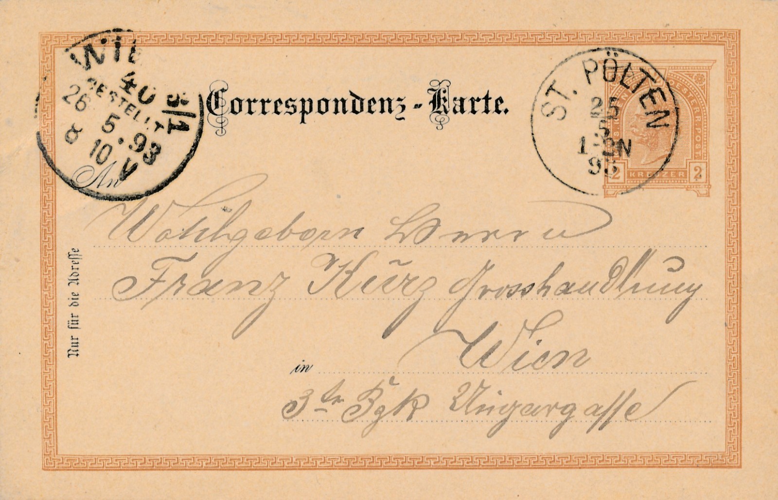 2 Kreuzer Ganzsachen - Karte aus St. Pölten (16354)