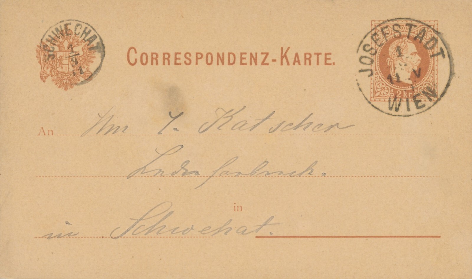 2 Kreuzer Ganzsachen - Karte aus Wien Josefstadt (11174)