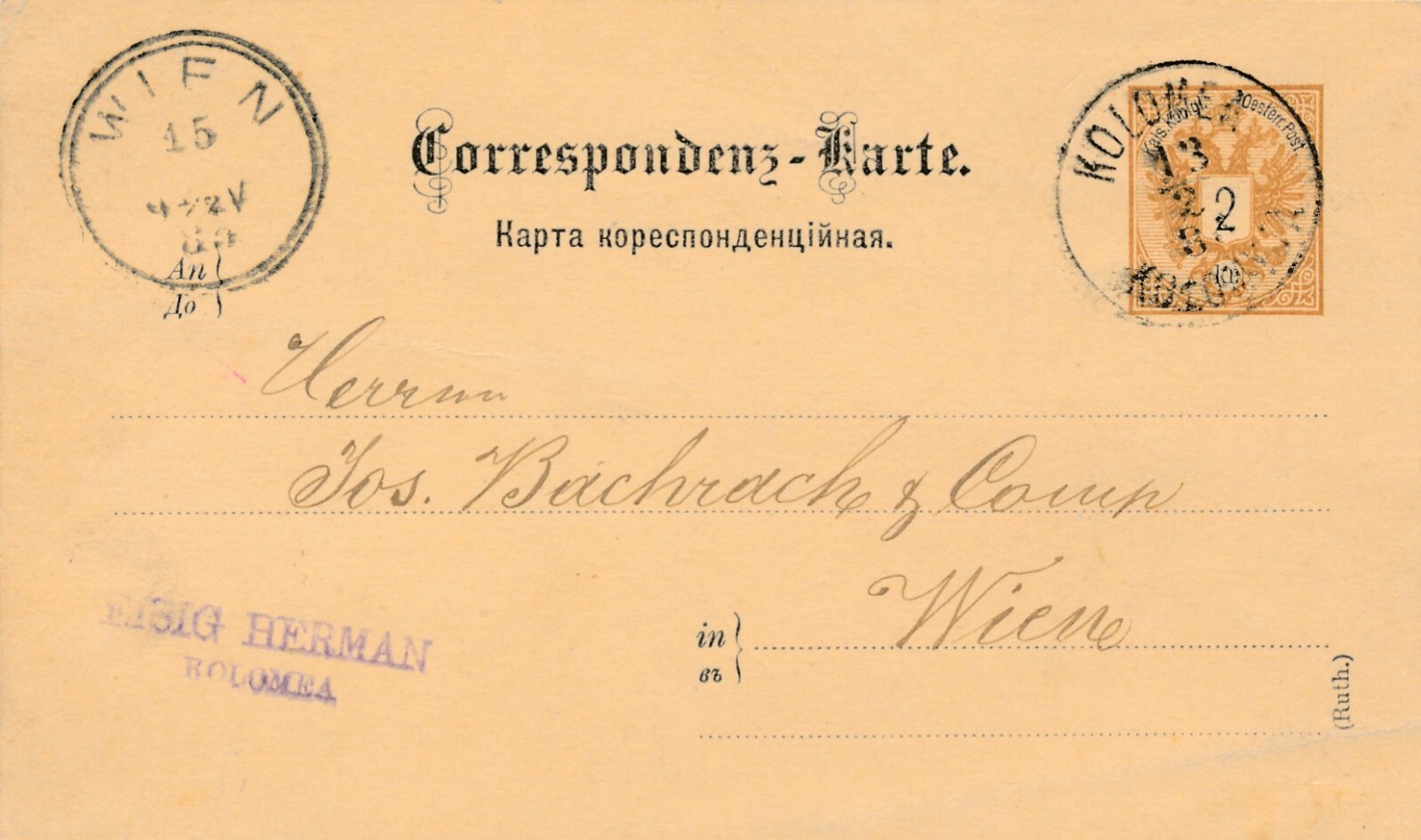 2 Kreuzer Ganzsachen - Karte (Ruth) 1888 aus Kolomea (10538)
