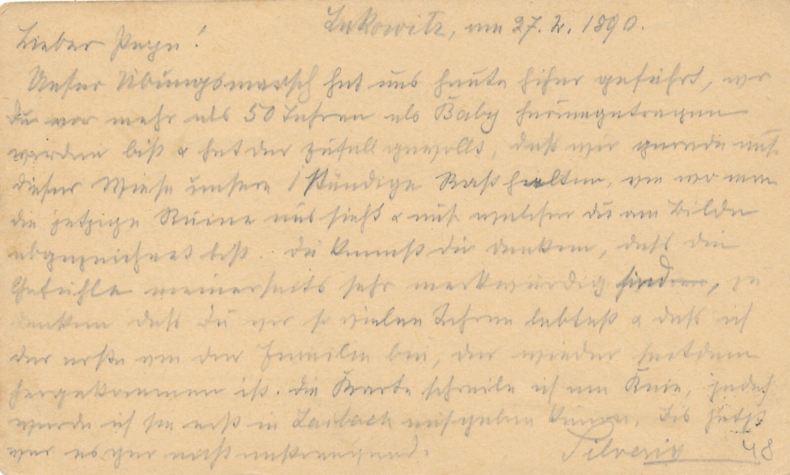 2 Kreuzer Ganzsachen - Karte (Slov) 1890 aus Laibach (10545)
