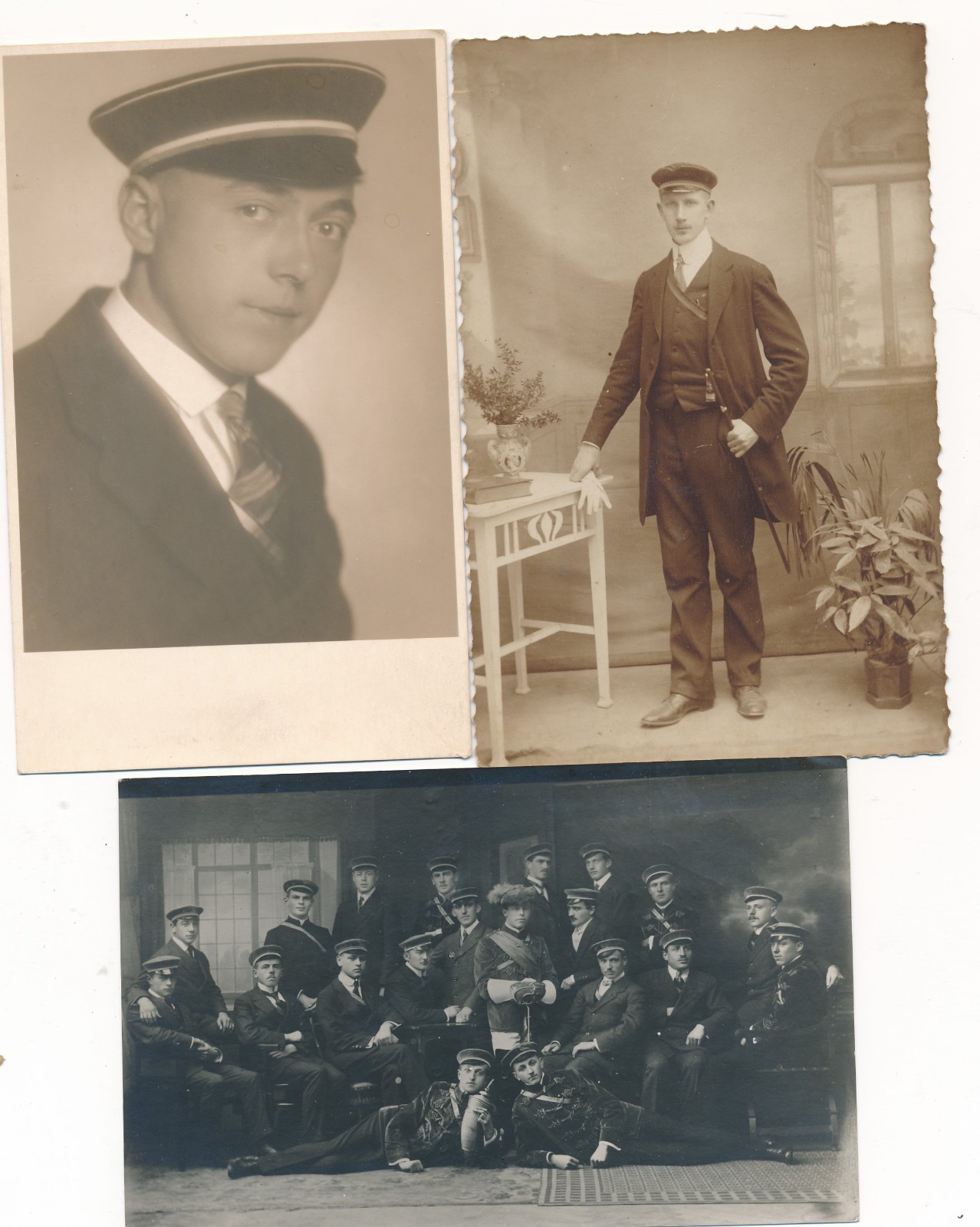 3 Karten Studentika Portrait und Gruppenfoto Ansichtskarte (14980)