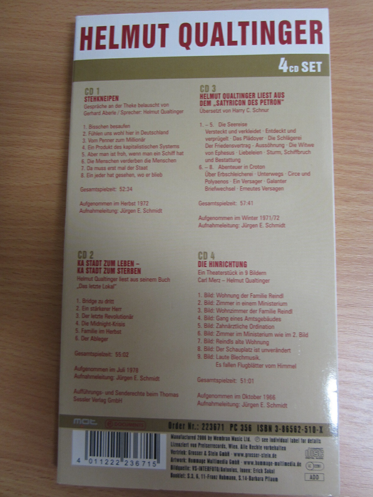 4 CD SET / Helmut Qualtinger / Slimbox / Stehkneipen,Die Hienrichtung / RAR /
