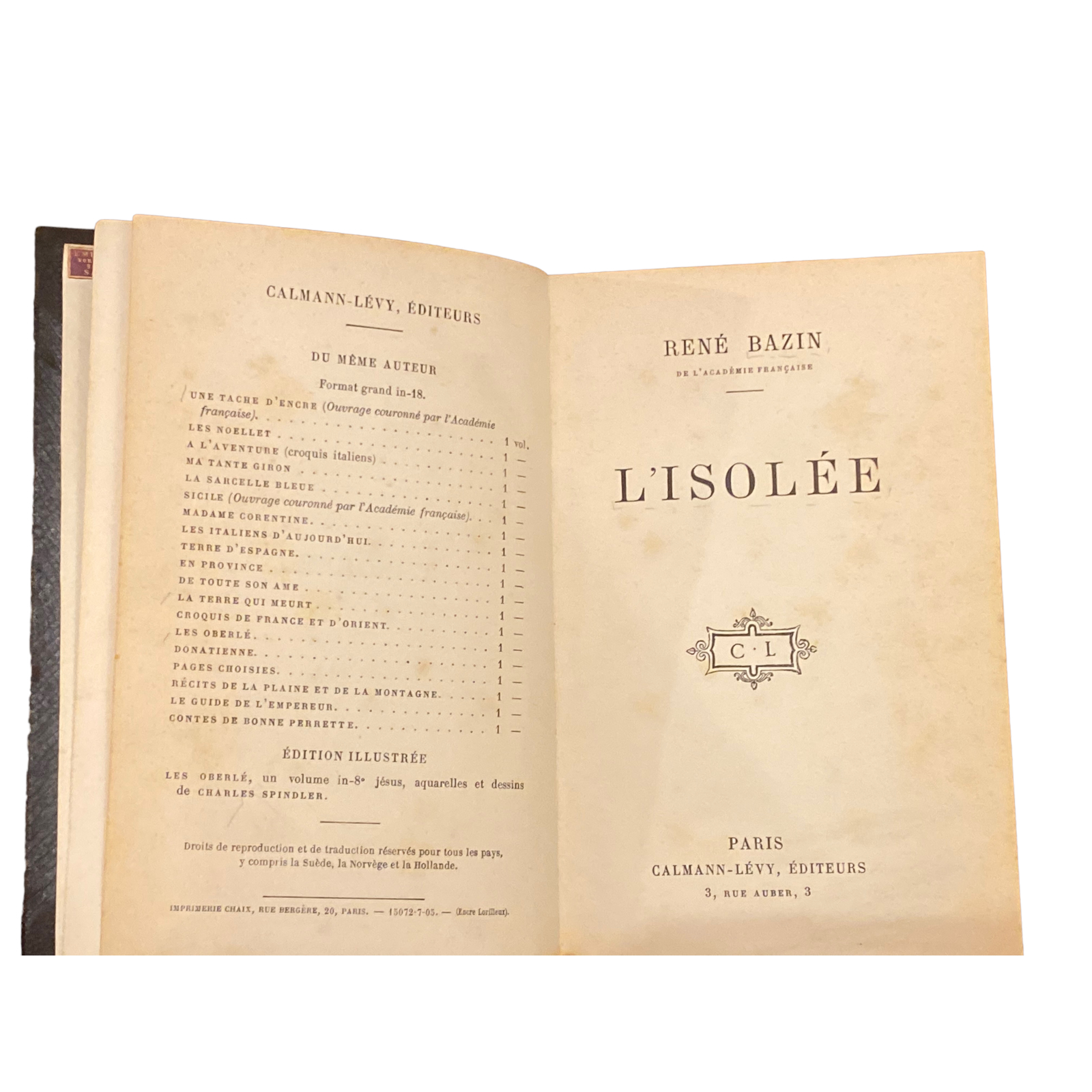 4317 René Bazin (académie francaise) L'ISOLÉE HC Paris
