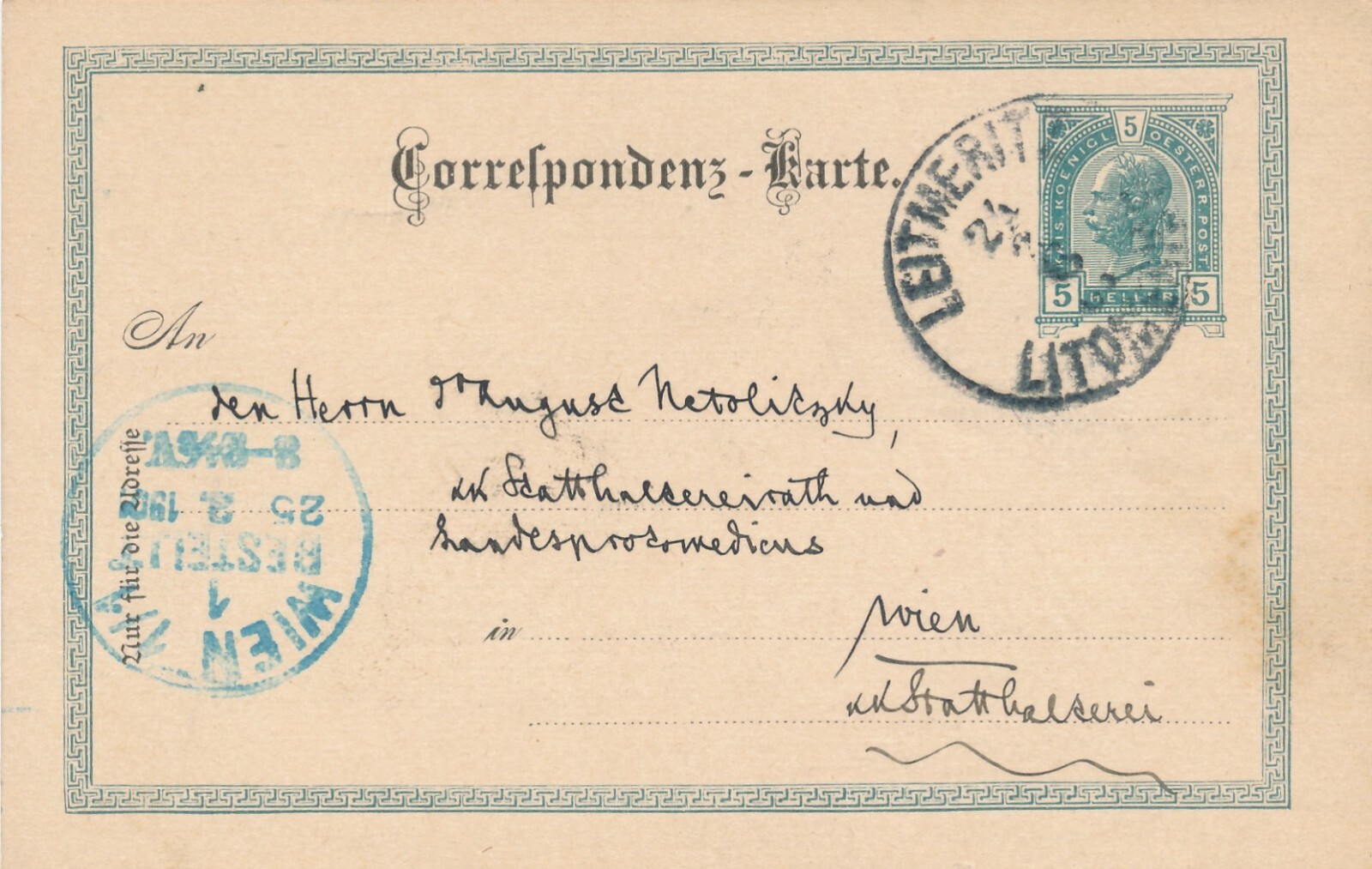 5 Heller - Ganzsachen - Karte 1901 aus Leitmeritz (10650)