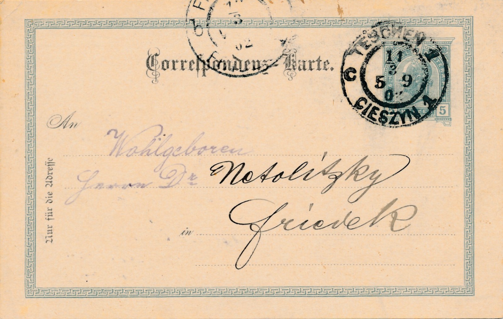 5 Heller - Ganzsachen - Karte 1902 aus Teschen (10651)