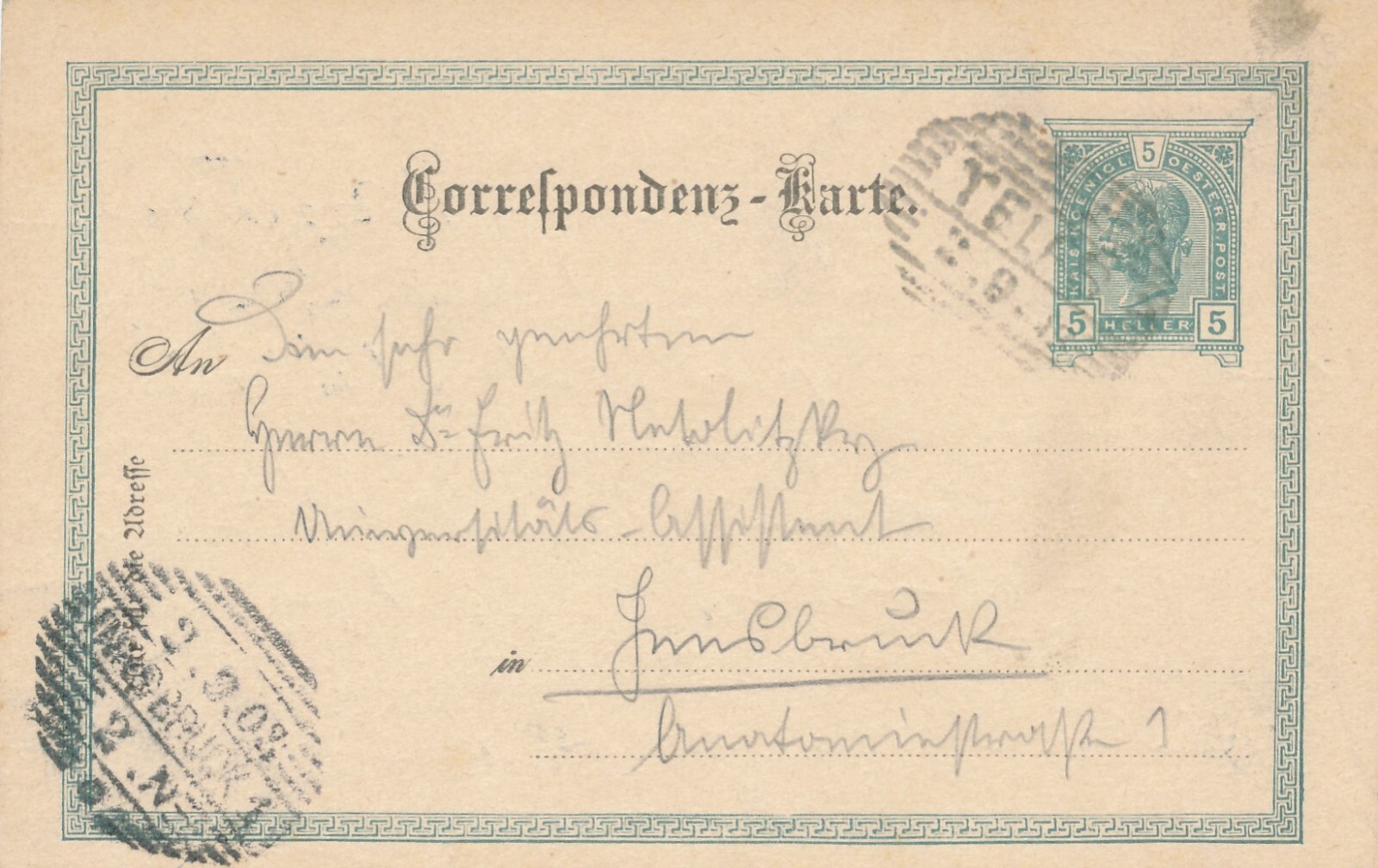 5 Heller - Ganzsachen - Karte 1903 aus Telfs (10653)